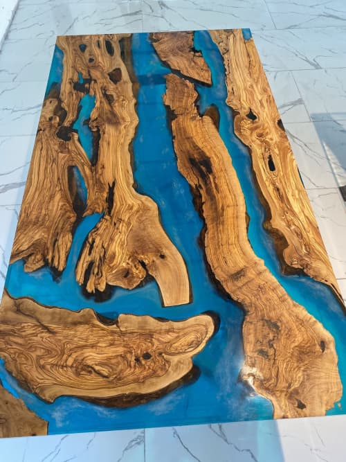 Custom Deep Blue Ocean Epoxy Table Luxury Epoxy Table by Tinella Wood